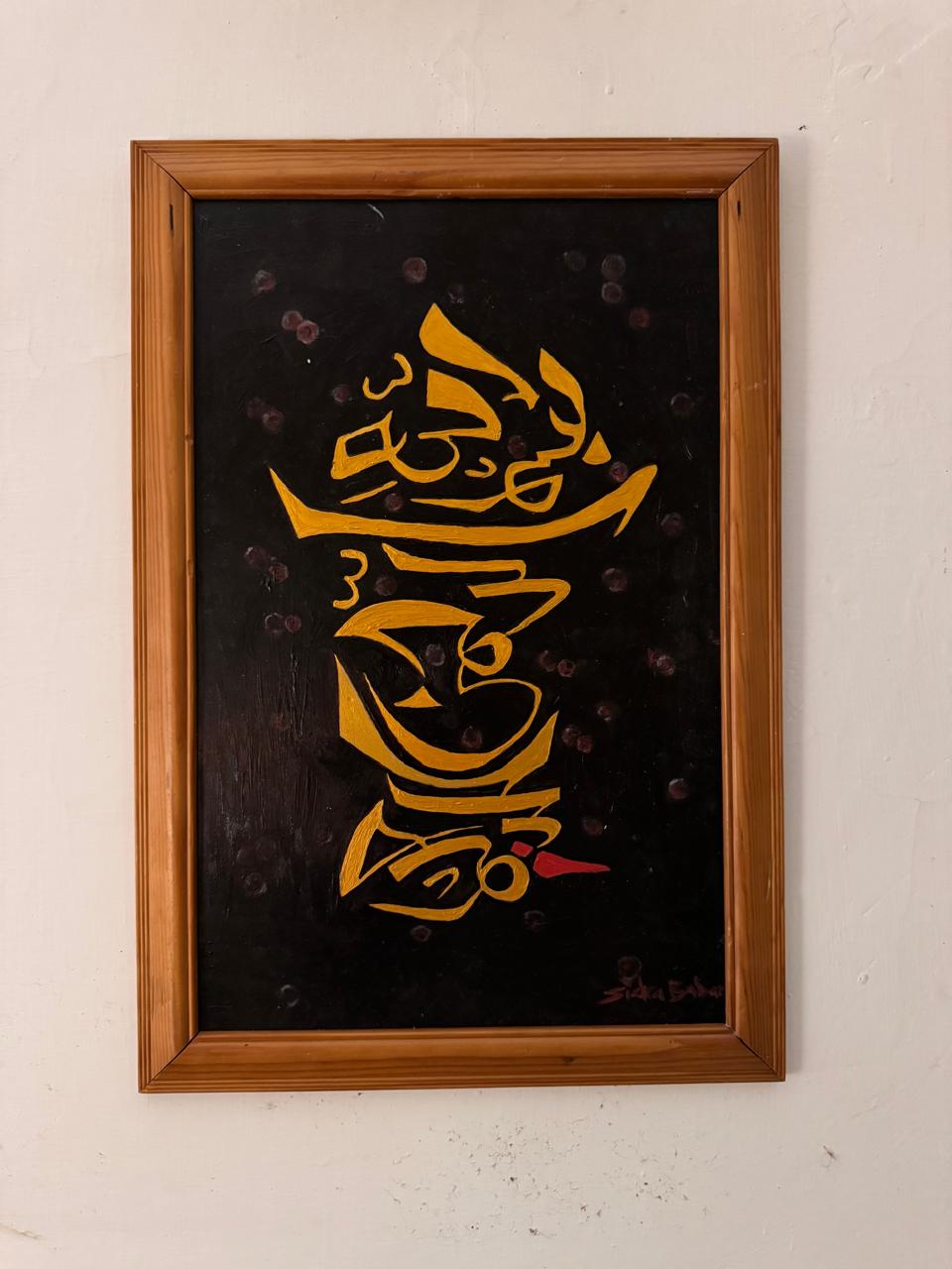“Calligraphy” is a bold artistic expression that merges traditional script with contemporary presentation. The striking gold lettering stands out against the dark textured background, creating a powerful visual contrast. The composition reflects spiritual depth and cultural elegance.